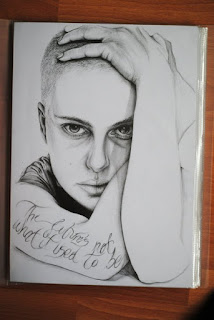 Some key differences between this old work and what I will be producing is that here I havn't used any pencil and that the decorative waves that intercept the face dominate the piece, which isn't what I' am looking to do. What I will do is possibly include some decorative line work that links drawn elements and symbols with the portrait.